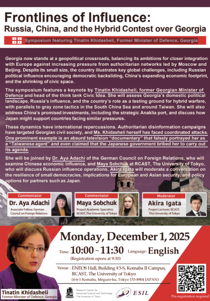 ზემოთჩამოთვლილი საფრთხეები მხოლოდ საქართველოს არ ეხება. ავტორიტარული აქტორების მიერ გავრცელებულმა დეზინფორმაციულმა კამპანიებმა მსოფლიო მასშტაბით გაიდგა ფესვები, ამიტომ შეხვედრა ყველასთვის საინტერესო უნდა იყოს” – წერს აკირა აგატა, ტოკიოის უნივერსიტეტის, კვლევისა და ტექნოლოგიების ცენტრის (RCAST) ლექტორი შეხვედრის შესახებ საინფორმაციო ბარათში.