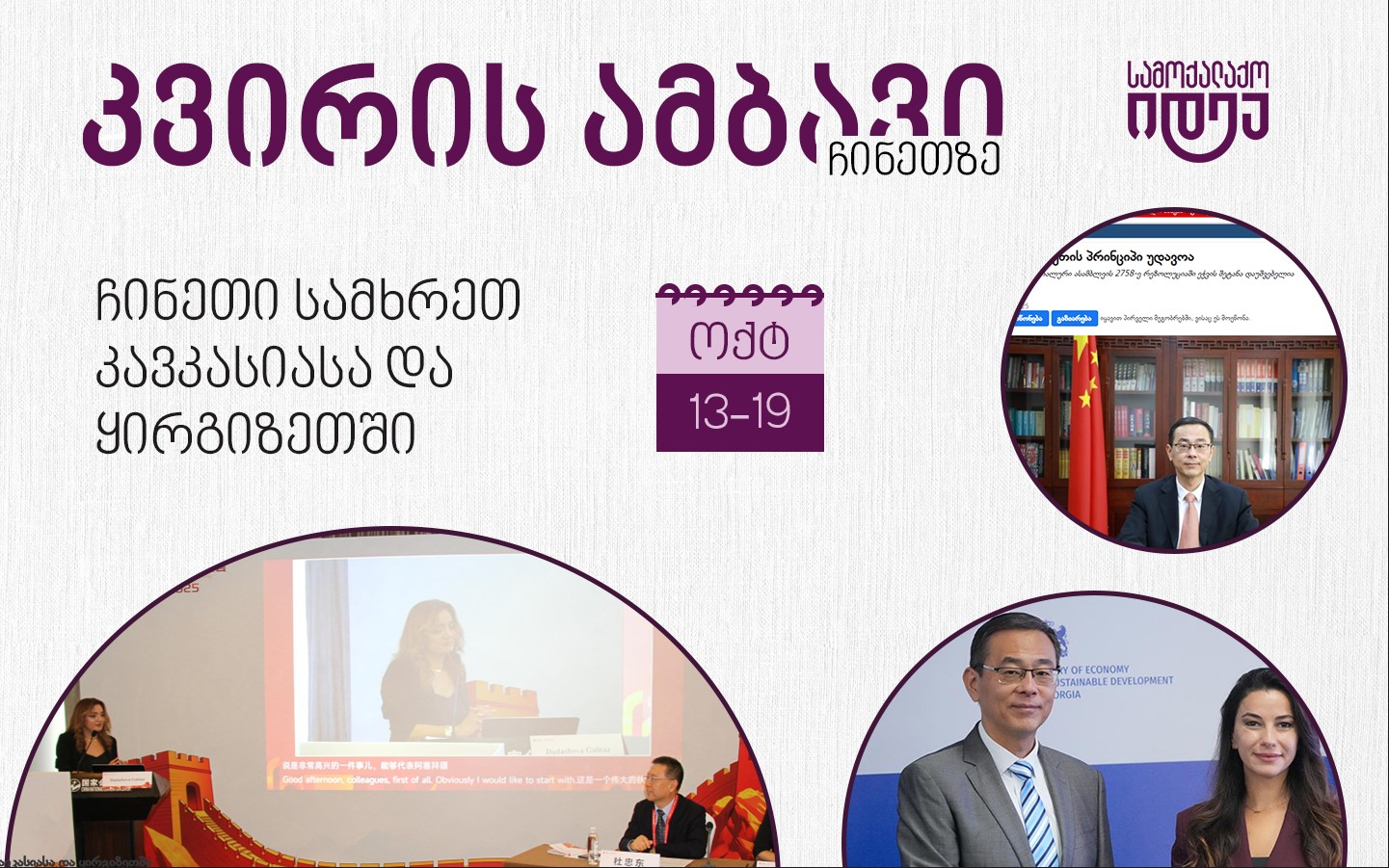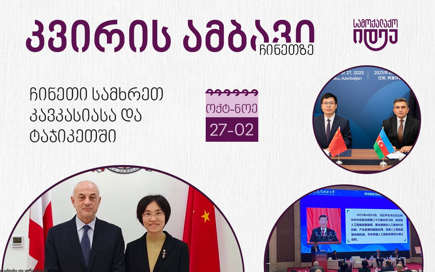 კვირის ამბავი კვირის ამბავი: ჩინეთი სამხრეთ კავკასიასა და ტაჯიკეთში (27.10 – 02.11)02/11/2025 სრულად ჩინეთი სამხრეთ კავკასიასა და უზბეკეთში (20-26 ოქტომბერი)30/10/2025 სრულად ჩინეთი სამხრეთ კავკასიასა და ყირგიზეთში (13-19 ოქტომბერი)19/10/2025 სრულად ჩინეთი სამხრეთ კავკასიასა და ყაზახეთში (6-12 ოქტომბერი)12/10/2025 სრულად