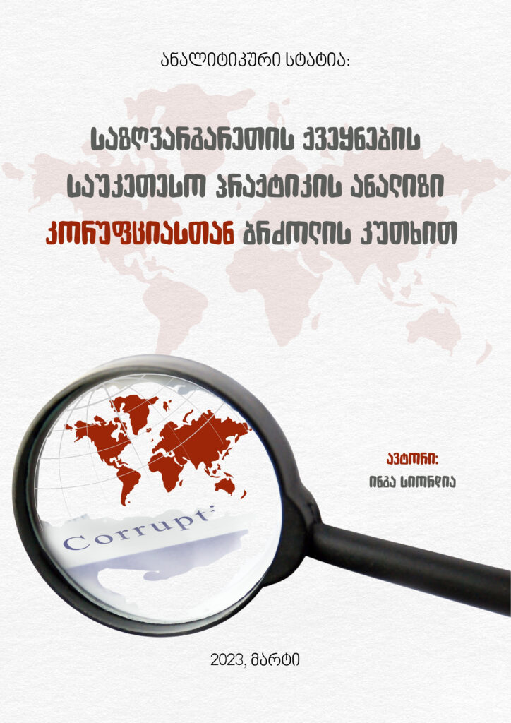 საზღვარგარეთის ქვეყნების საუკეთესო პრაქტიკის ანალიზი კორუფციასთან ბრძოლის კუთხით