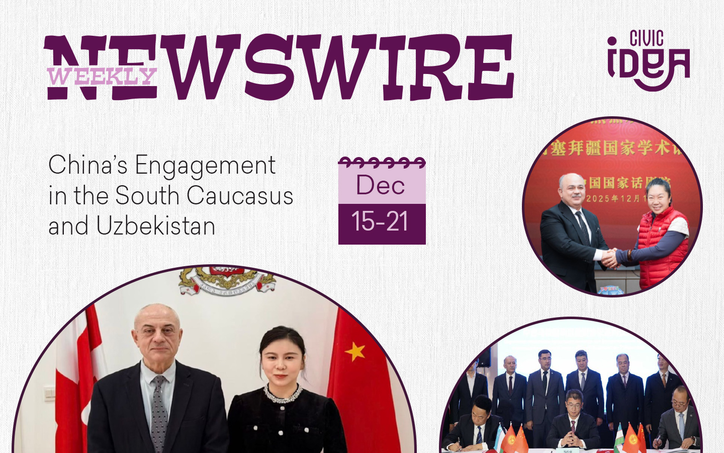 Weekly News China in the South Caucasus and Uzbekistan (December 15-21)21/12/2025 სრულად China in the South Caucasus and Kyrgyzstan (8-14 December)19/12/2025 სრულად China in the South Caucasus and Kazakhstan (December 1–7)07/12/2025 სრულად China in the South Caucasus and Tajikistan (November 17-23)23/11/2025 სრულად China in the South Caucasus and Uzbekistan (November 10-16)16/11/2025 სრულად China In the South Caucasus and Kazakhstan (November 3-9)09/11/2025 სრულად China in the South Caucasus and Tajikistan (27.10-02.11)02/11/2025 სრულად China in the South Caucasus and Uzbekistan (October 20-26)30/10/2025 სრულად China in the South Caucasus and Kyrgyzstan (October 13-19)19/10/2025 სრულად China’s Engagement in the South Caucasus and Kazakhstan (October 6–12)12/10/2025 სრულად